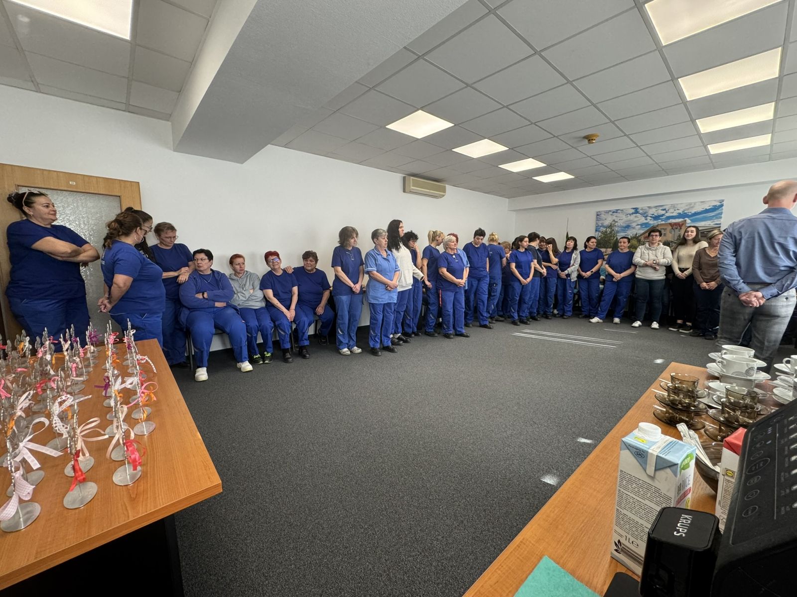 A napi munkából ma „megszöktettük” és egy kis kényeztető délelőtti időszakot csempésztünk a napjukba. Idén saját gyártású virággal köszöntöttük a Hölgyeket, eldöntve az örökös szálas, vagy cserepes virág kérdéskört.